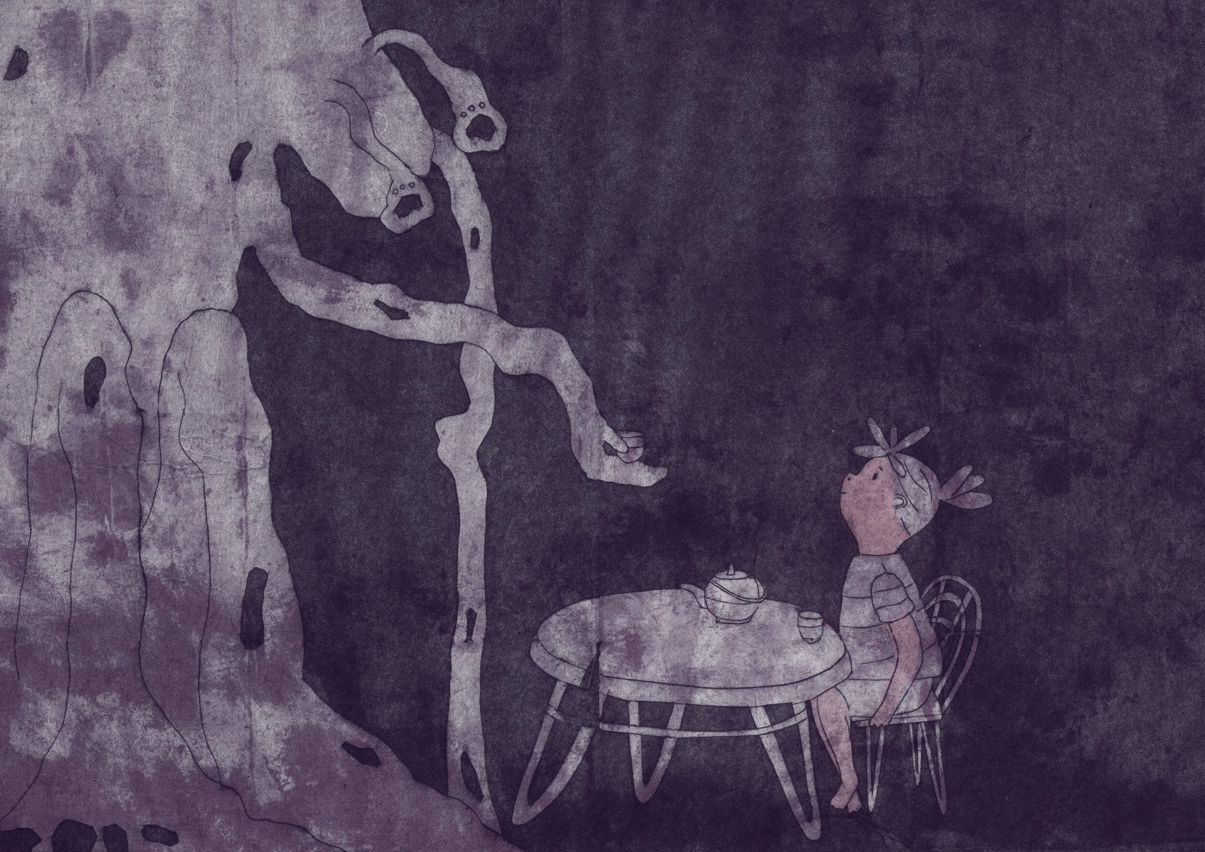 All of these artworks are collagraph prints on milk cartons that were then digitally cleaned up and coloured in.